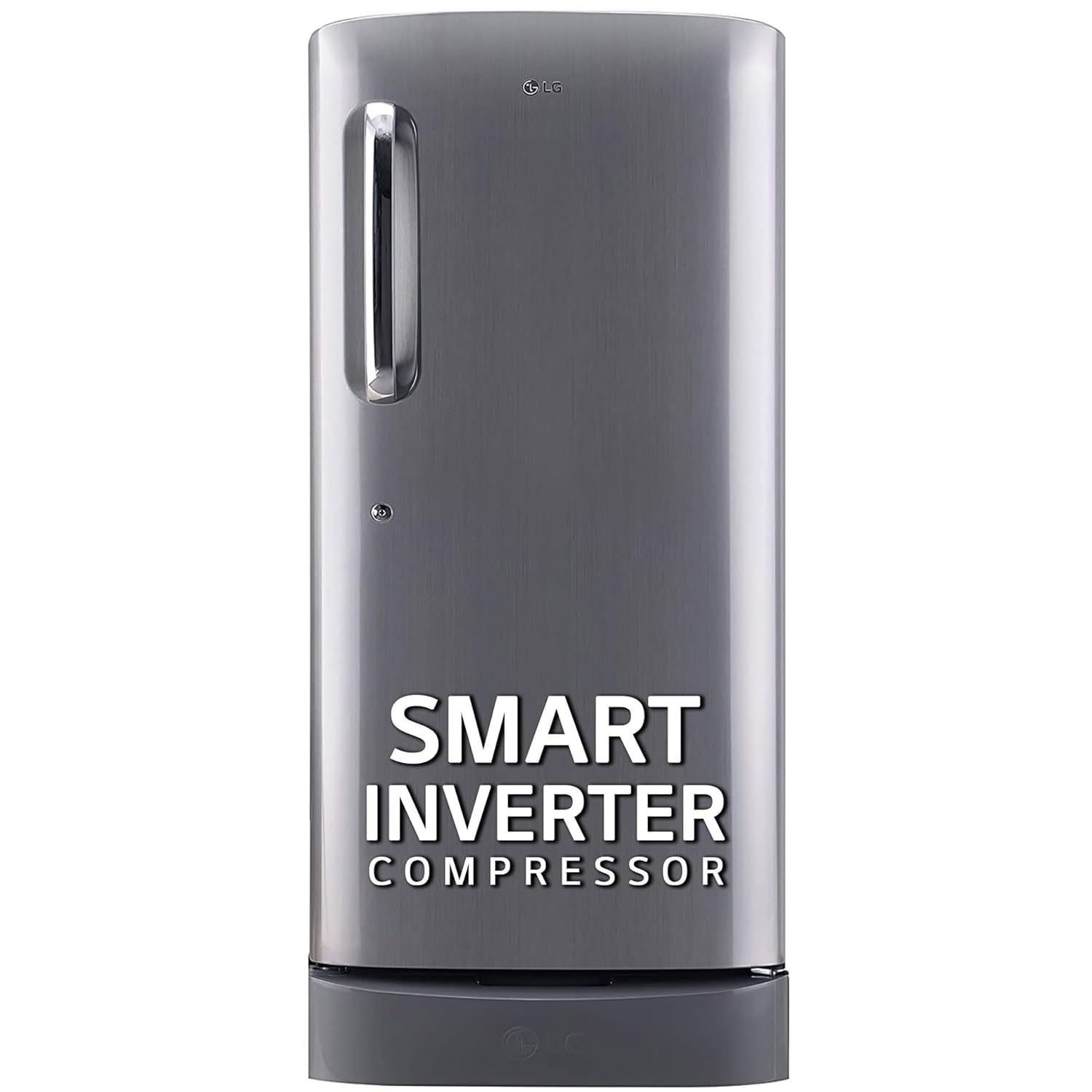LG 185 L 5 Star Inverter Direct-Cool Single Door Refrigerator (2023 Model, GL-D201APZU, Shiny Steel, Base stand with drawer)